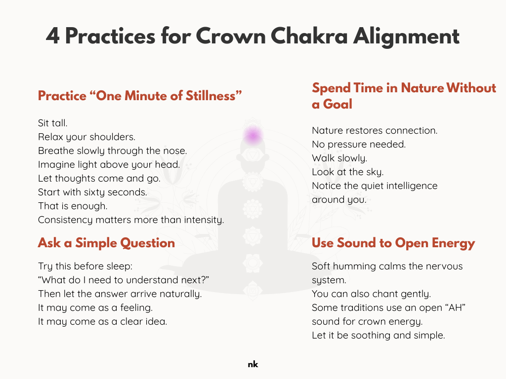 When your crown chakra flows well, life feels held. You may still face challenges. However, you feel guided through them. You trust there is purpose unfolding.